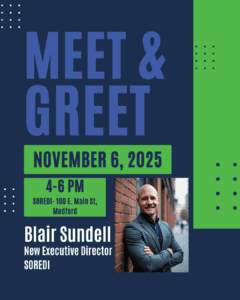 In open-house style, we welcome you to stop by SOREDI to officially welcome Blair Sundell as the new SOREDI Executive Director. Though he has already been here three months and has hit the ground running, we wanted to pause and invite you as we make it even more official.