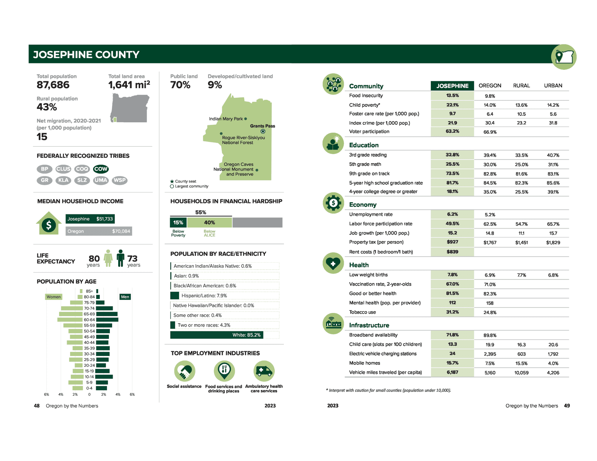 Southern Oregon Communities SOREDI serves Josephine and Jackson Counties, in southwest Oregon. Many of our cities are directly off Interstate 5 (I5), and several communities have rail access. The Ford Family Foundation and OSU's 2023 Oregon by the Numbers data are below. 2023 Oregon by the Numbers - TFFF & OSU Josephine County Grants Pass Cave Junction Merlin 2023 Oregon by the Numbers - TFFF & OSU Jackson County Ashland The Towne of Butte Falls Central Point Eagle Point Gold Hill Jacksonville Medford Phoenix Rogue River Shady Cove Talent White City Read About Our Communities Comprehensive Economic Development Strategy (CEDS) Community Stories Southern Oregon Edge