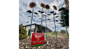 As reported by Dillemuth, at the base of each metal sunflower is a metal-crafted coffee cup, flower, butterfly, flame, and cheese slice to acknowledge the five neighboring businesses that sponsored the project. These businesses are located along Main Street and are noted below. Read full article here